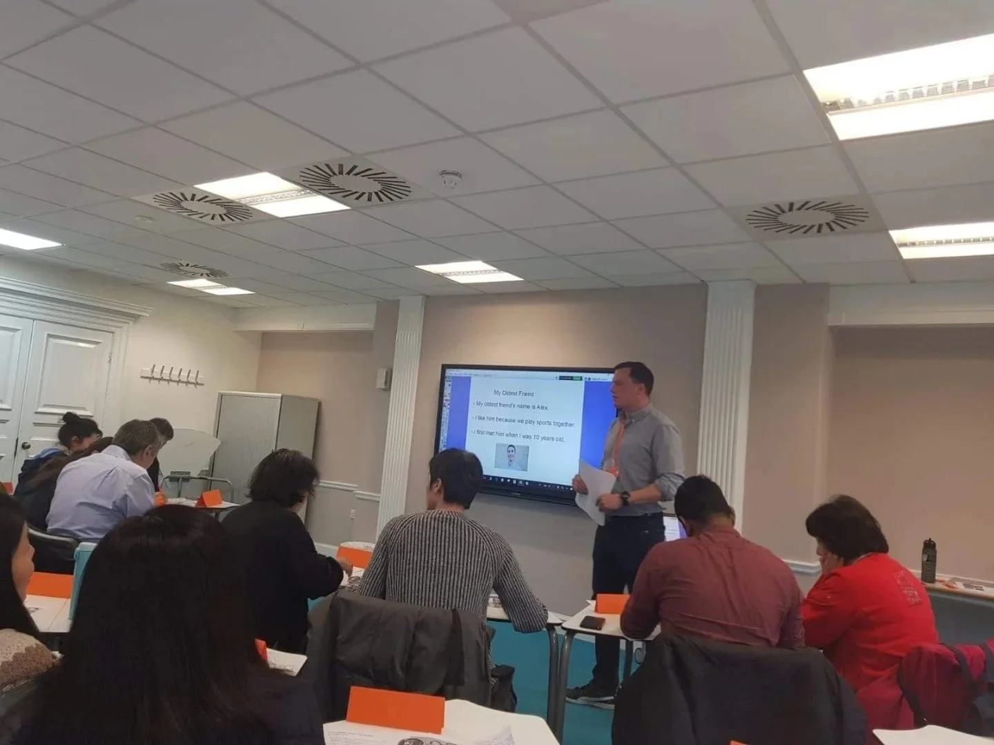 I use my own materials focused mostly on speaking practice and fluency. But it is also possible to use a textbook or an agreed structure depending on your needs. Whether it be General English or Business English.