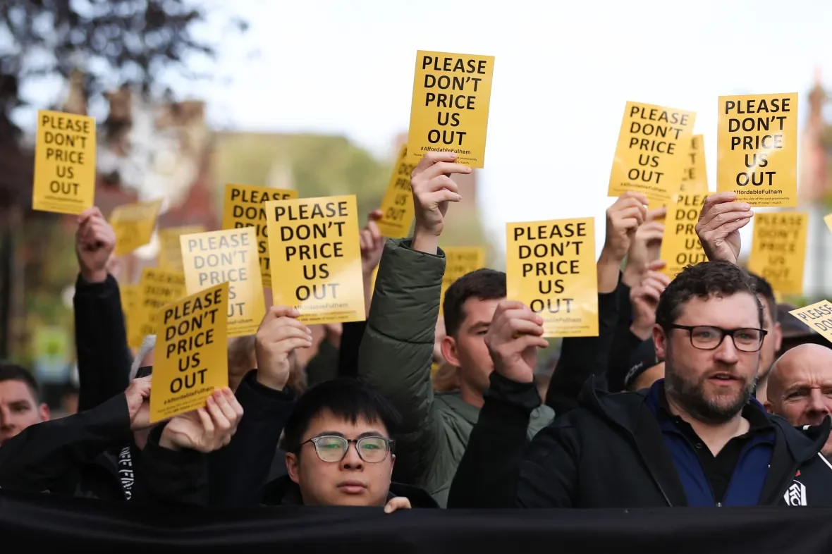 Fan protests have become more common as the costs of going to see EPL clubs continue to rise (photo credit: Jacques Feeney via Getty Images as shown in the Times